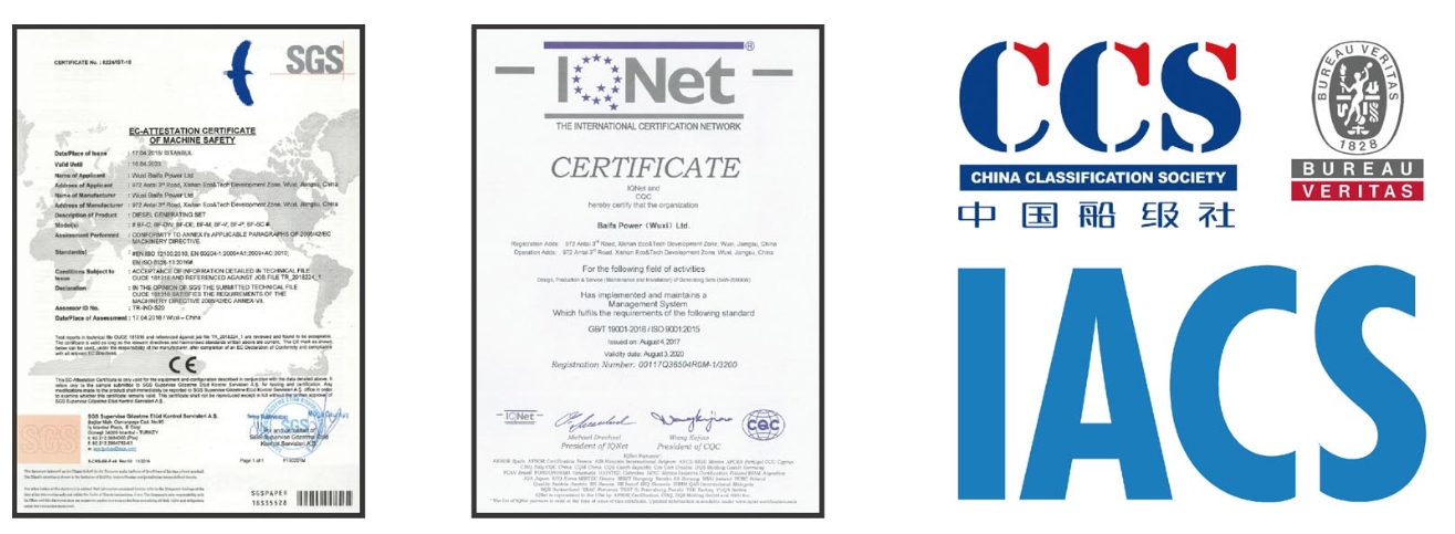 ■ 百发康明斯系列船用發電機組使用的发动机、发电机及整机均符合中国船级社(简称CCSOG视讯·(中国区)有限公司官网网站,国际船级社协会成员)