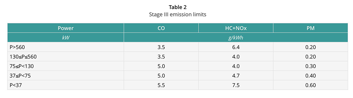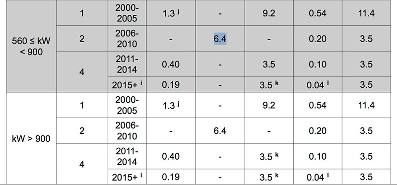 EURO STAGE IIIA / IIIB EMISSION DATA COMPARISON, reference: https://dieselnet.com/standards/eu/nonroad.php